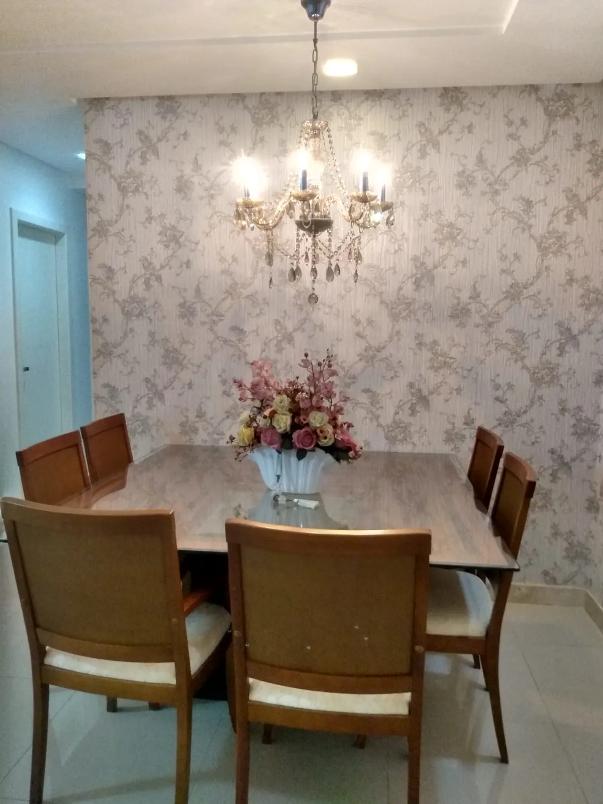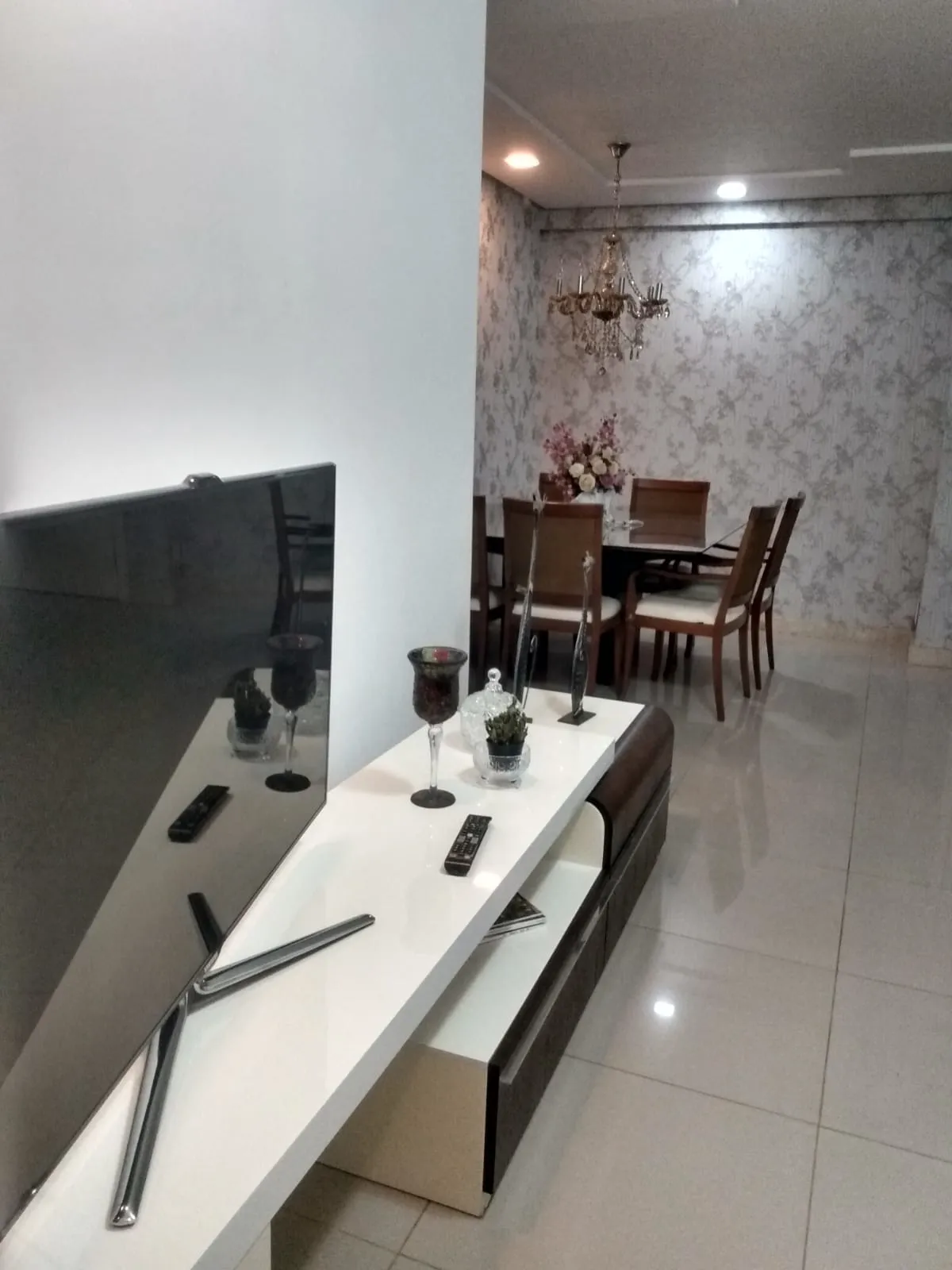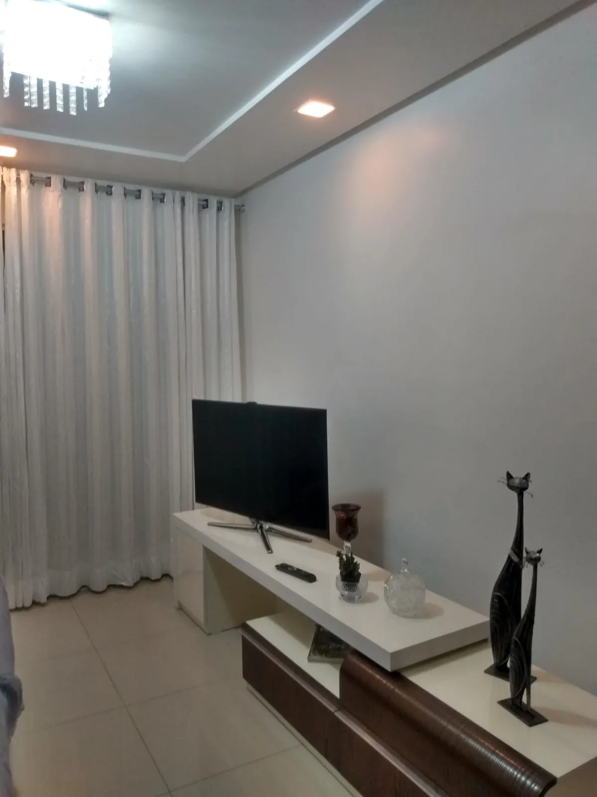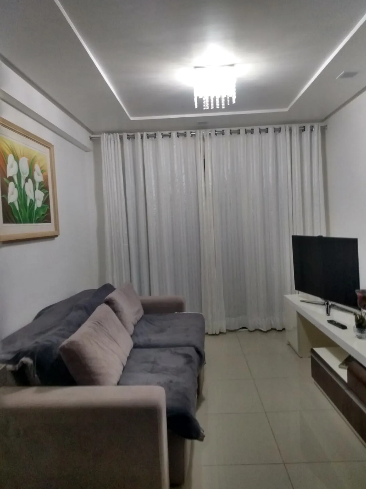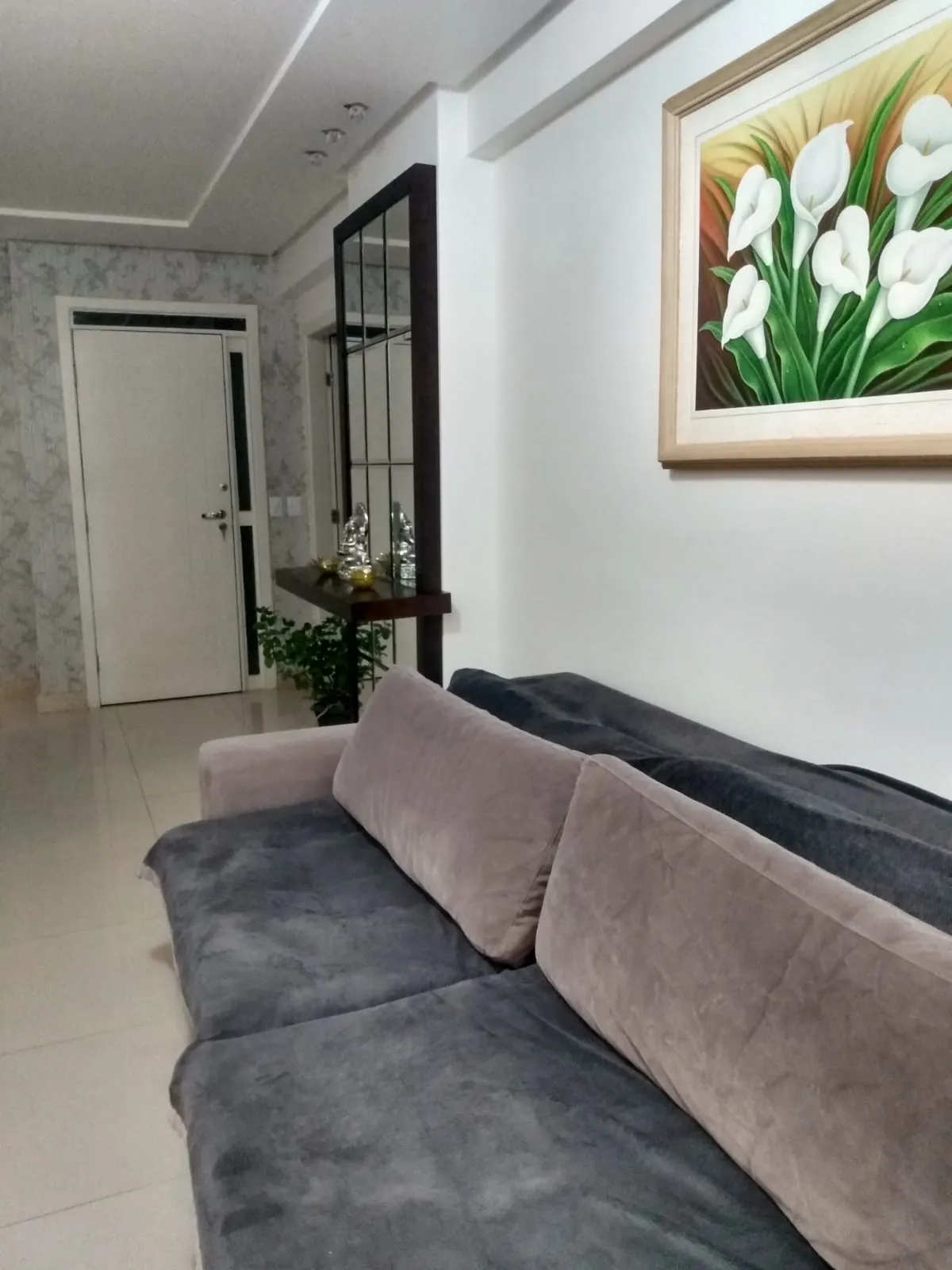Apartamento com 02 quartos sendo uma suíte, sala com 02 ambientes, sanitário social, cozinha, área de serviço, 02 garagens cobertas