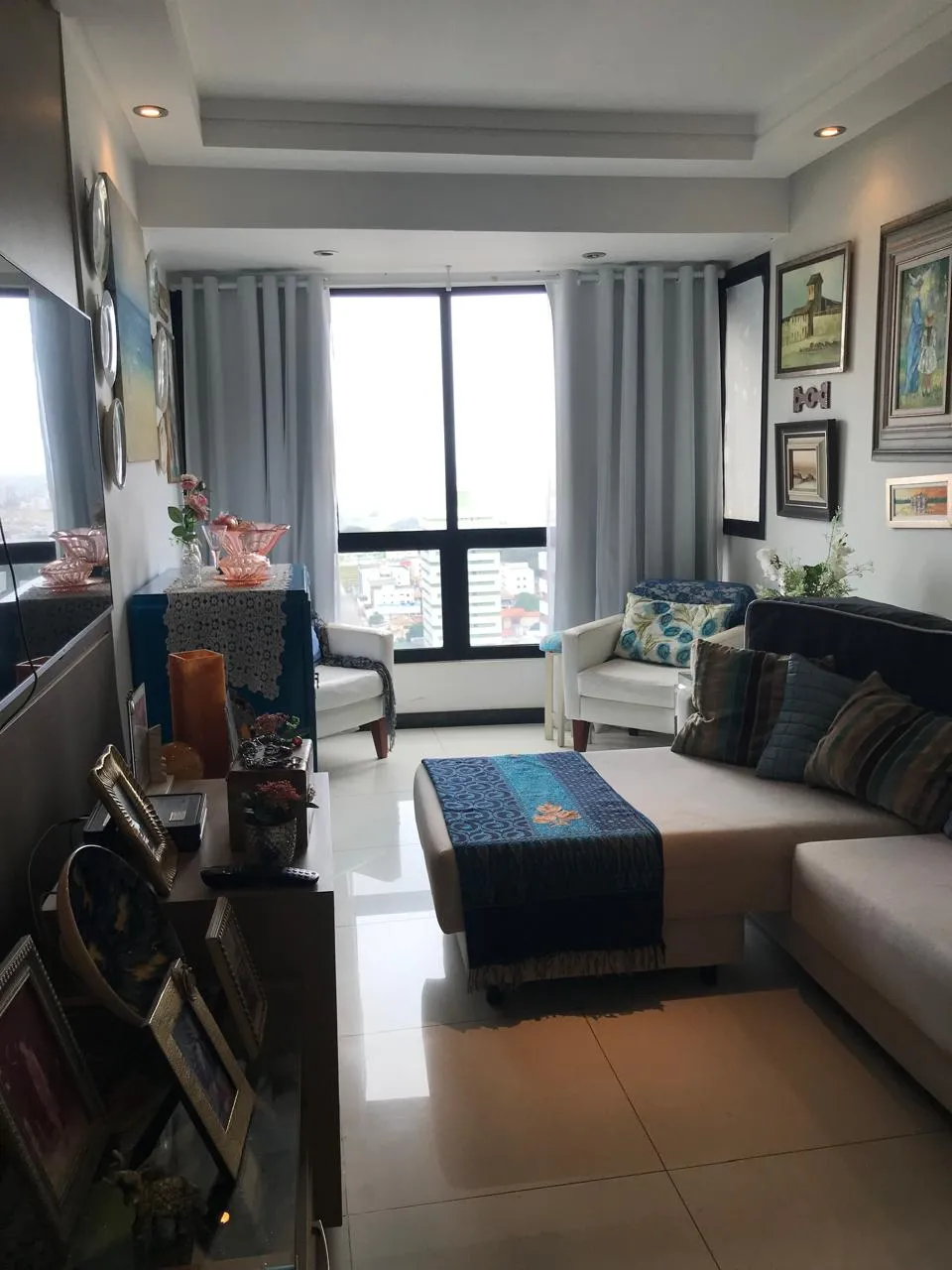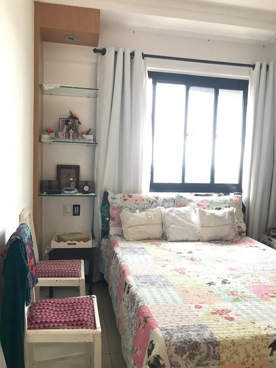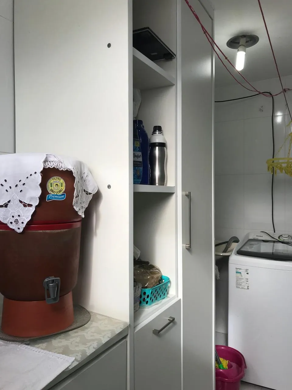 Apartamento com 02 quartos sendo uma suíte, sala, banheiro social, cozinha com armários, eletrodomésticos inclusos, geladeira, fogão e maquina de lavar, área de serviço, banheiro de empregada, garagem para 01 carro.