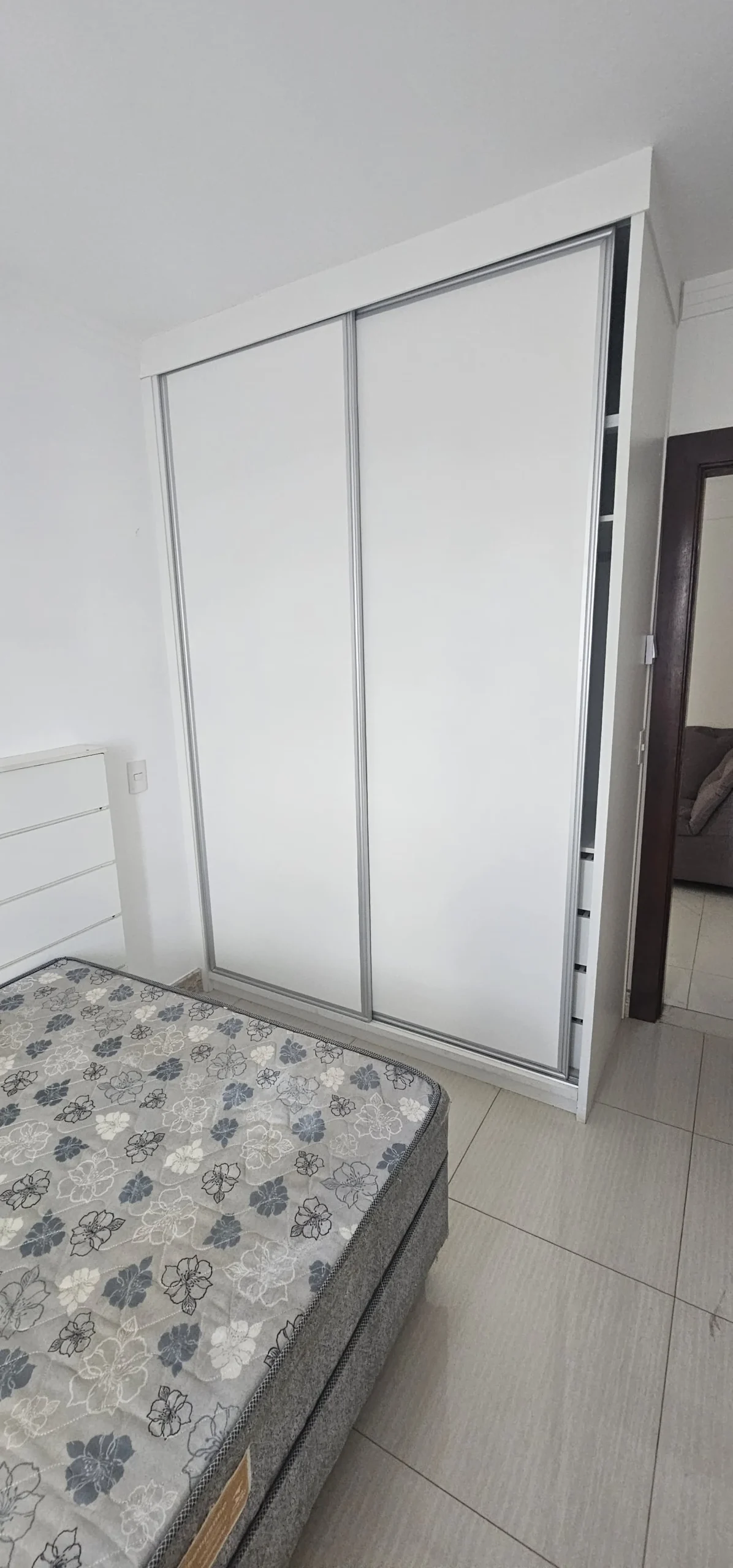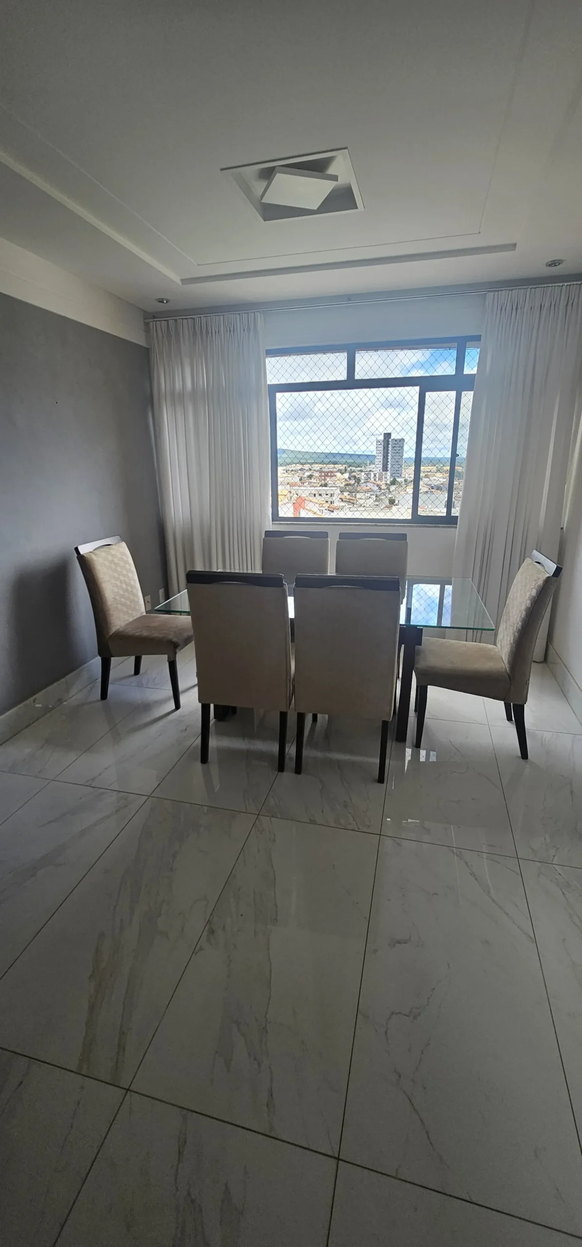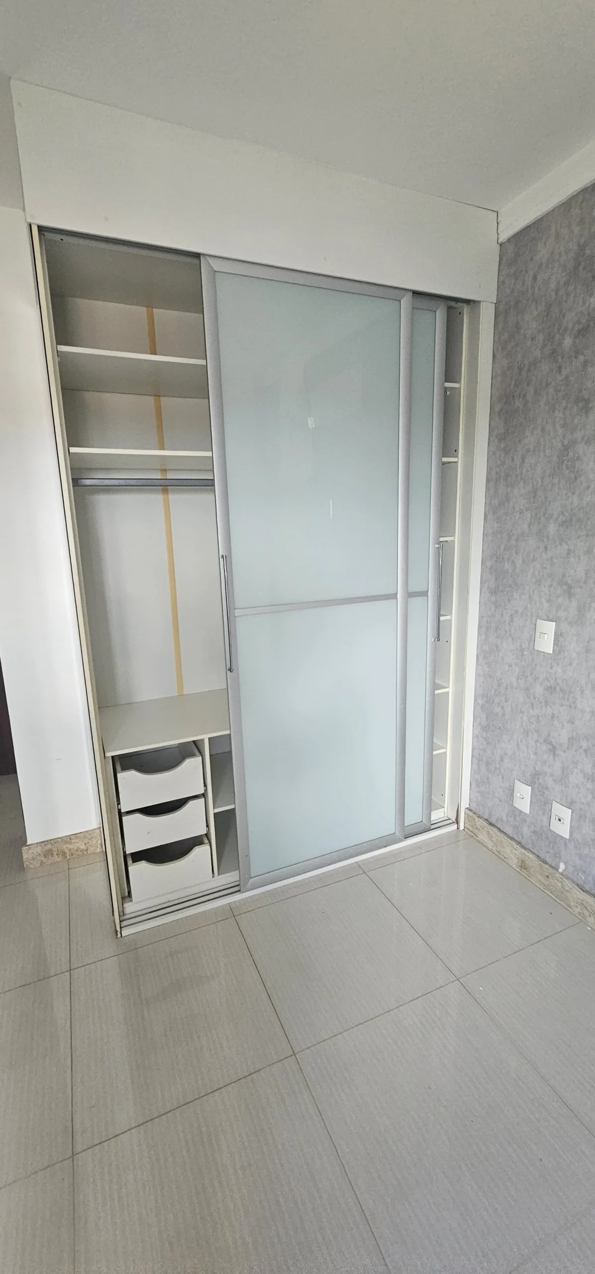 Apartamento com 03 quartos sendo uma suíte, sala, cozinha com armários, sanitário social, área de serviço e garagem.