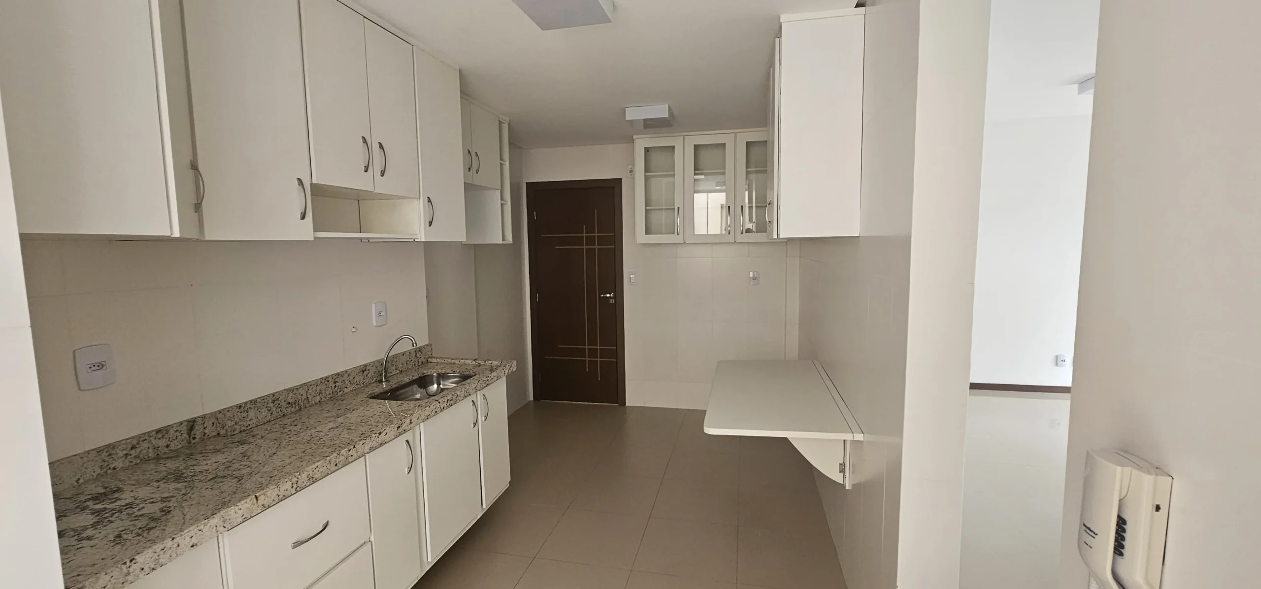 Apartamento com 03 quartos sendo uma suíte, sala, varanda, cozinha com armários, sanitário social, banheiro de empregada e garagem para 02 carros. Salão de festas e academia.