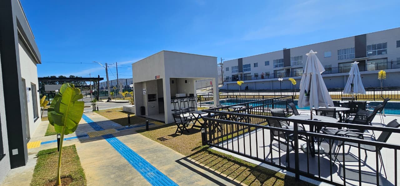 Apartamento com 02 quartos sendo uma suíte, sala, cozinha, sanitário social, área de serviço e garagem. Portaria 24hs Salão de festa, academia, piscina, espaço gourmet.