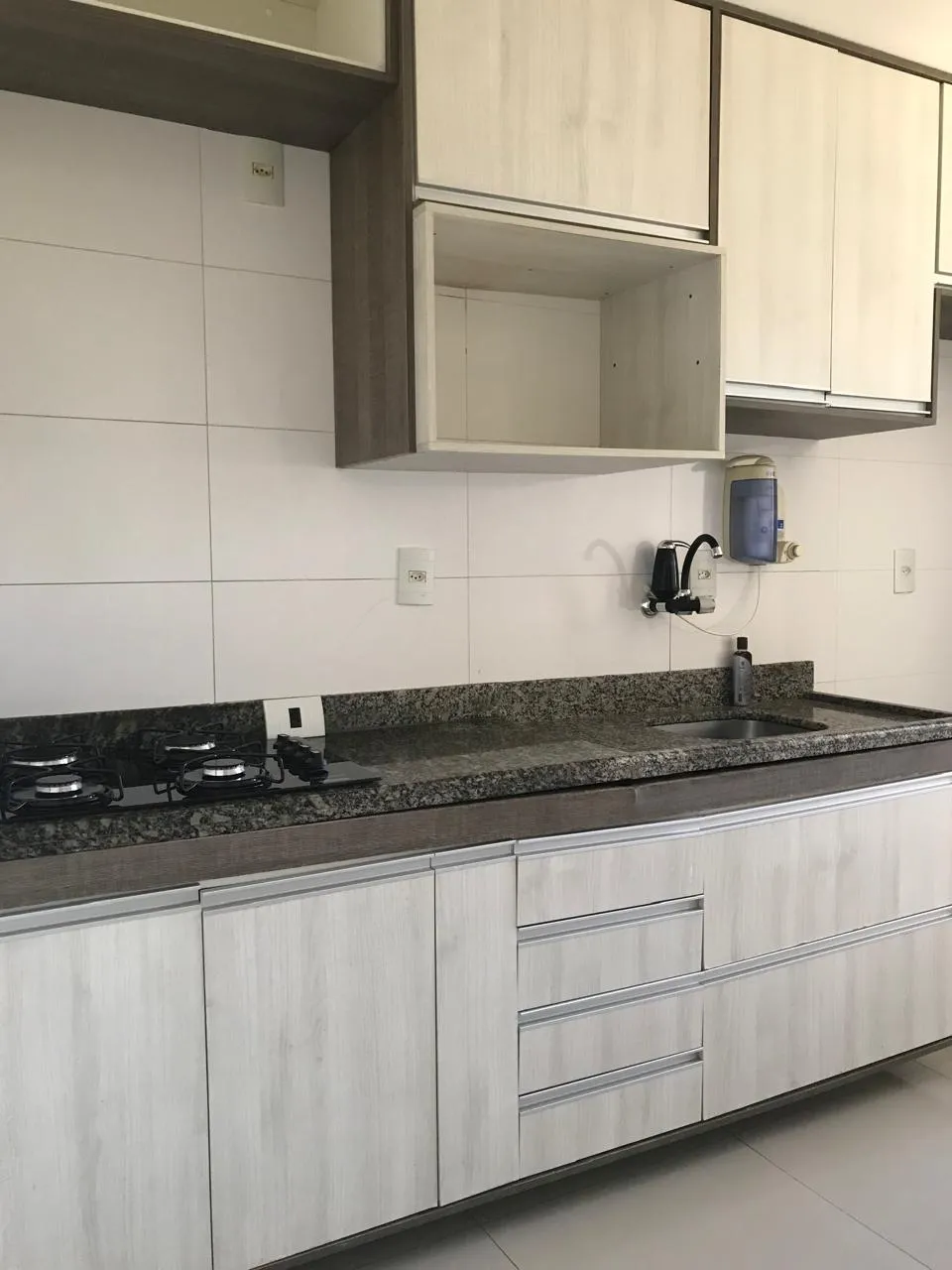 Apartamento com 03 quartos sendo uma suíte, sala, cozinha, sanitário social, área de serviço e garagem.