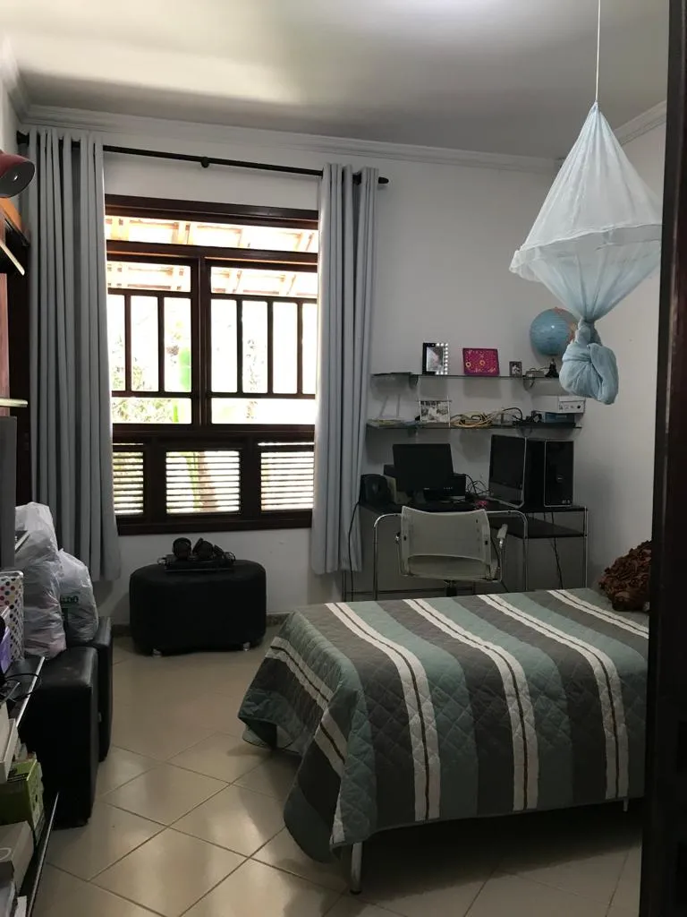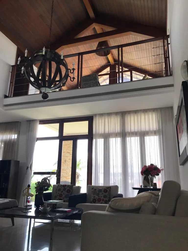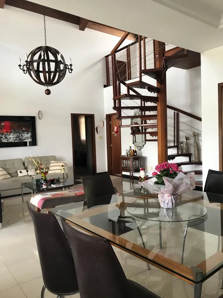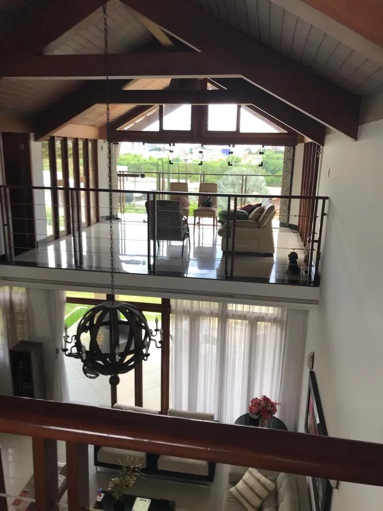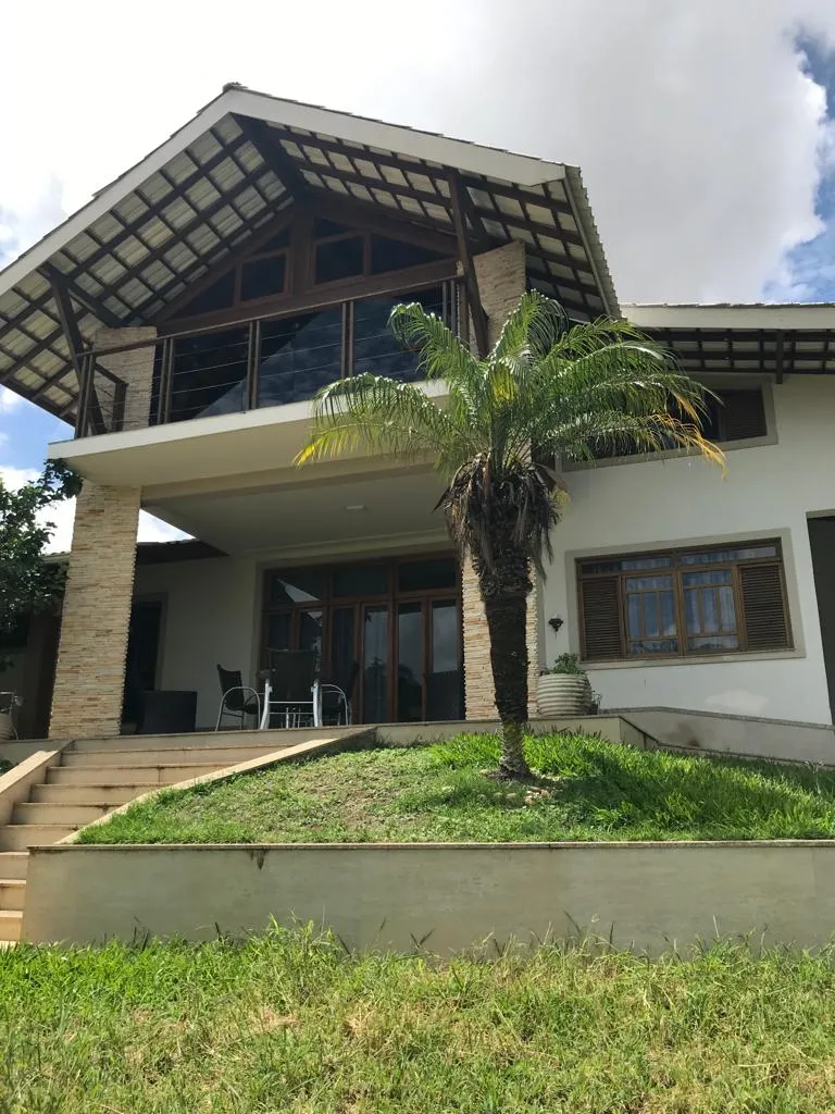 Casa em cond. fechado construída em terreno de 750m², contendo 03 suítes com armários embutidos, 02 salas, lavabo, mezanino, sala para home theater, cozinha, dependência completa, espaço externo para academia, espaço gourmet, área de serviço, varanda, amplo quintal, garagem para 04 carros e vista privilegiada da cidade.
