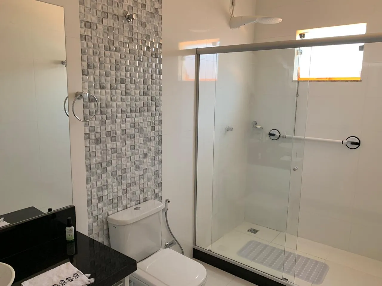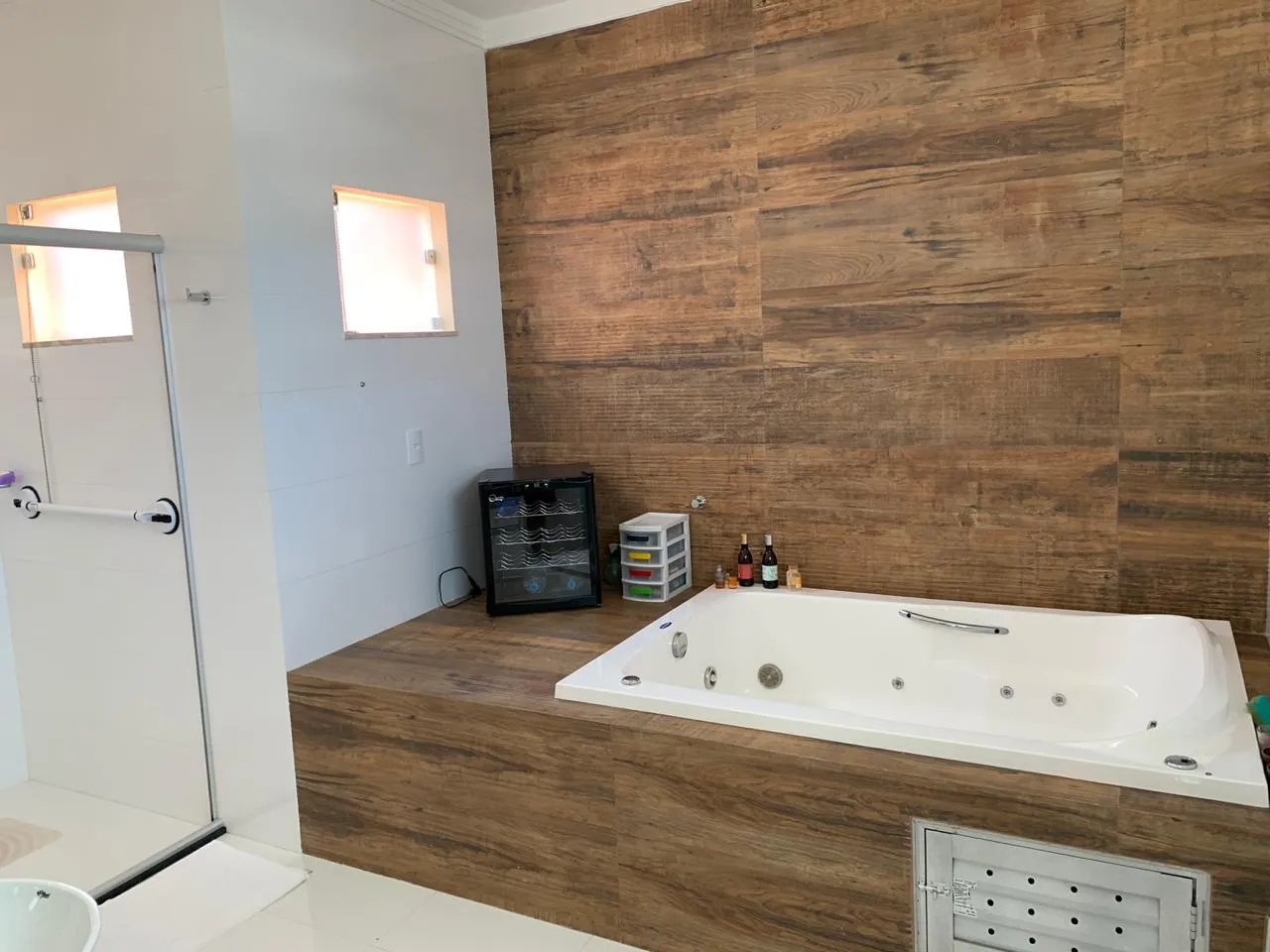 Casa com 05 quartos, sendo 02 suítes, banheira com hidromassagem, 03 salas, cozinha com armários embutidos sob medida, piscina, churrasqueira e garagem para até 05 carros.