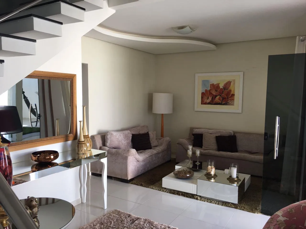 Pavimento superior: 01 quarto + 01 suíte com closet, sanitário social, sala intima e varanda.