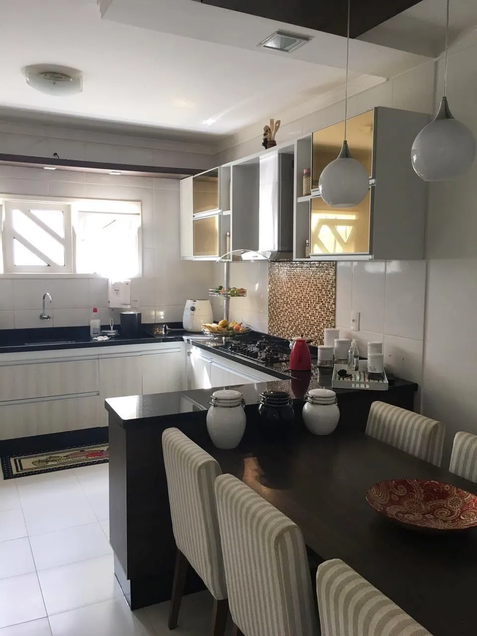 Pavimento térreo: 02 salas, 01 quarto, sanitário social, cozinha, área de serviço, espaço gourmet, varanda e garagem para 03 veículos.