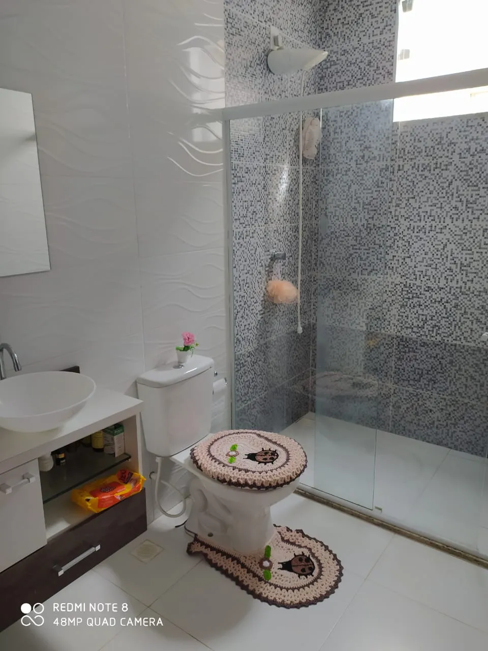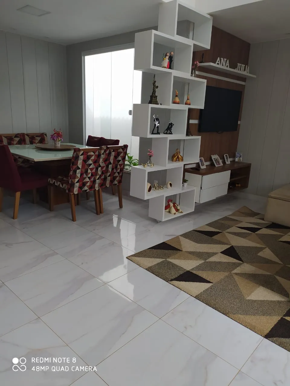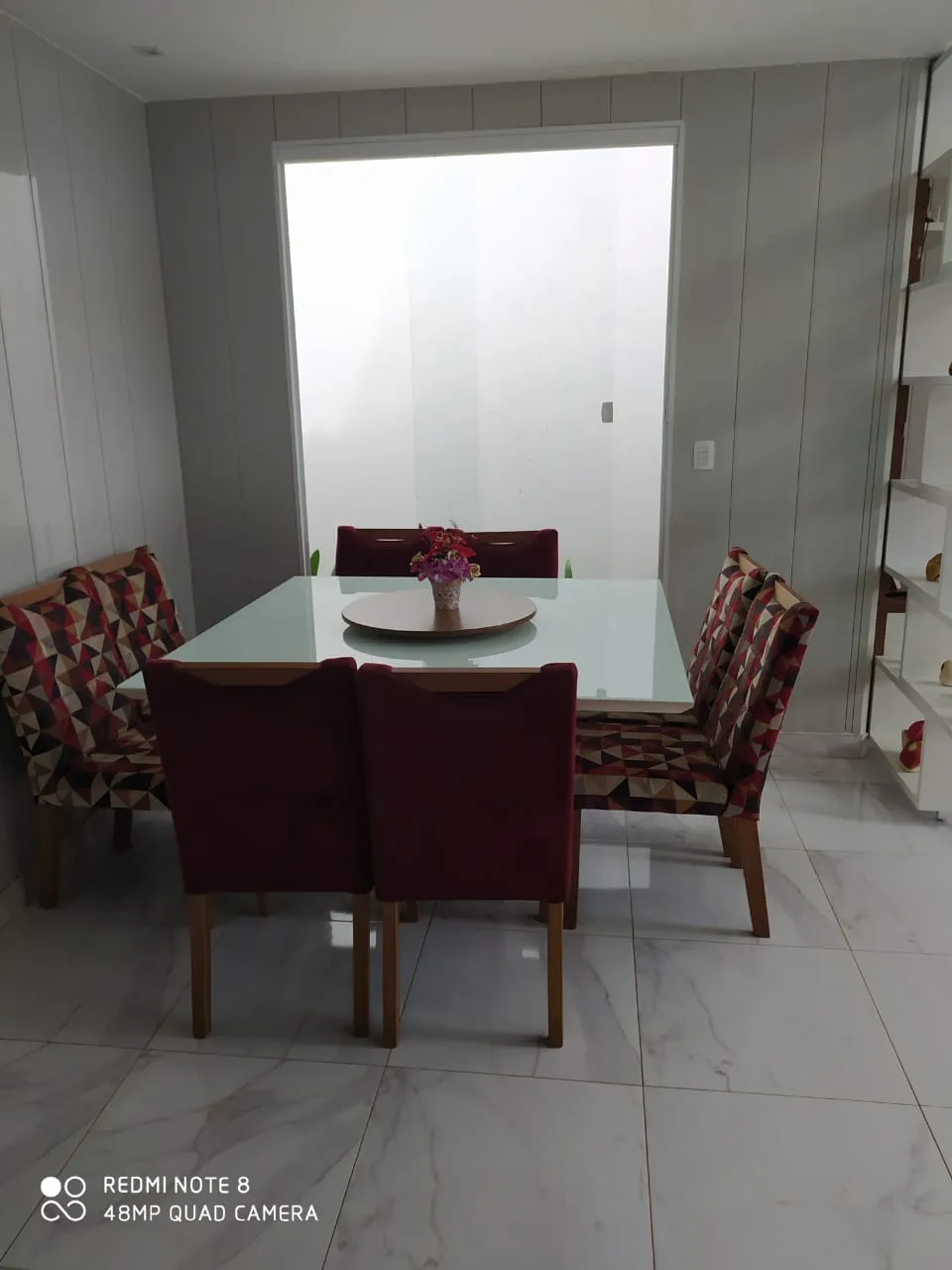 Casa com 03 quartos sendo 01 suíte com closet, sala com 02 ambientes, copa, cozinha, área de serviço, varanda e garagens. (proximidades de supermercado, academia, escola.)