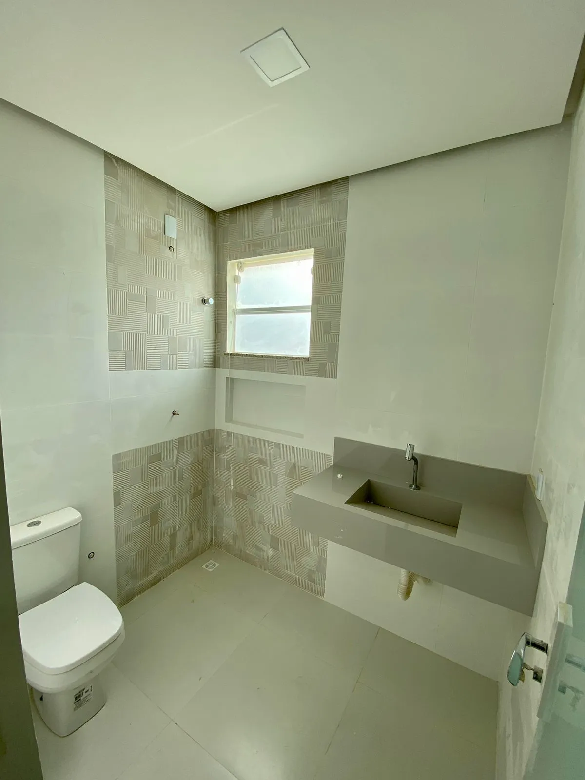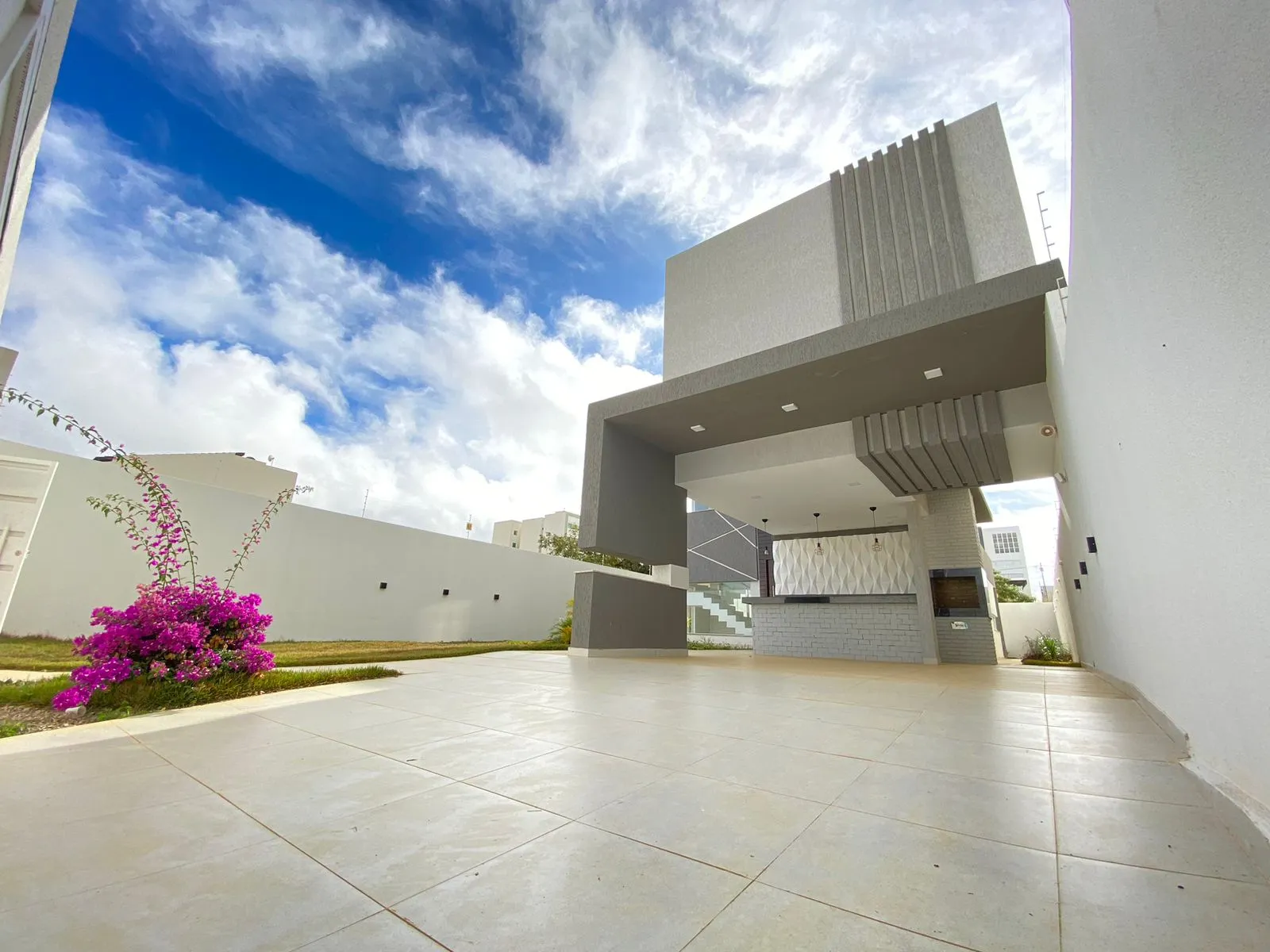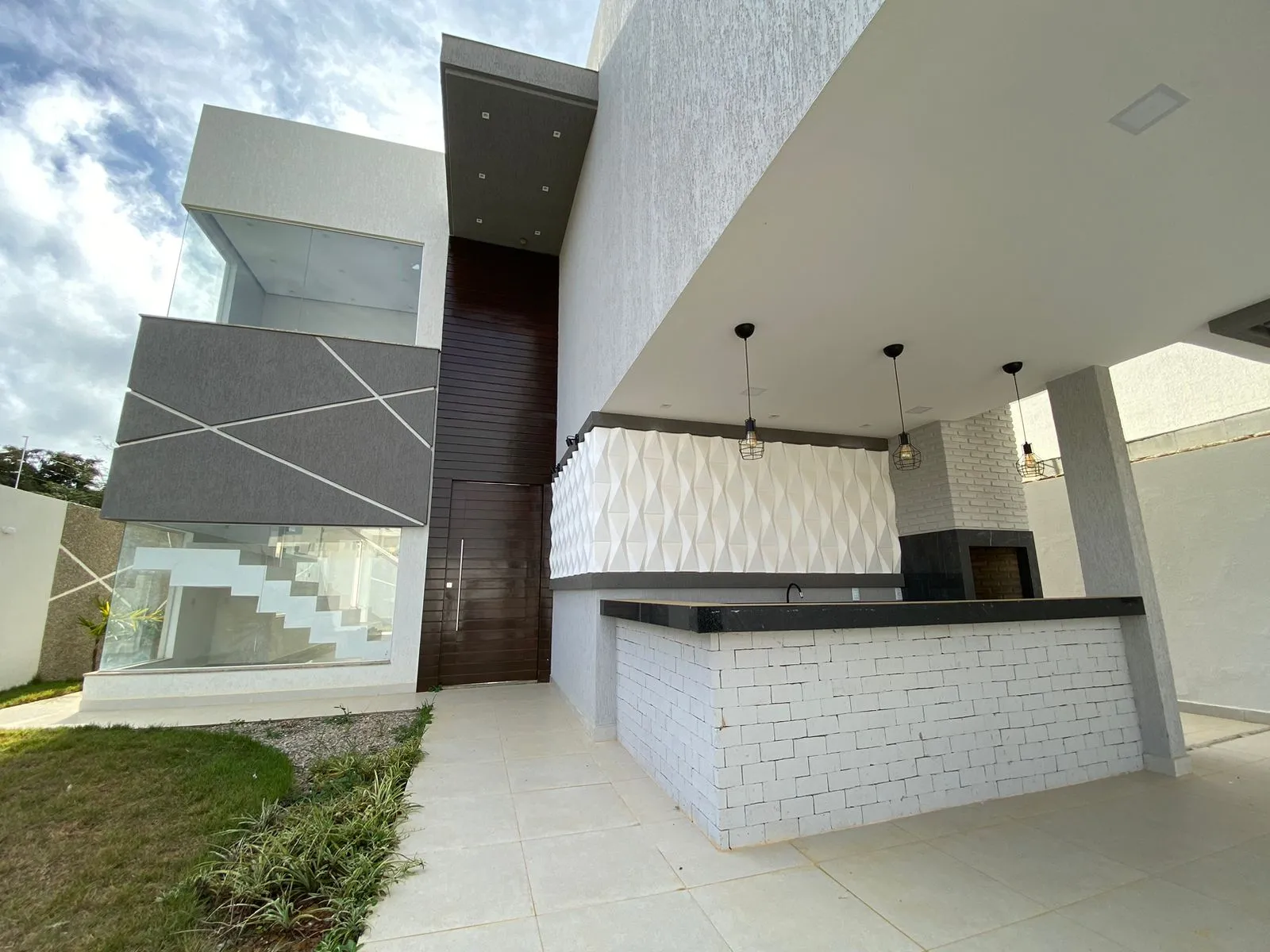 Casa com 03 suítes sendo uma suíte máster com banheira, sala, cozinha, banheiro social, quintal, área gourmet e garagem para 04 carros.