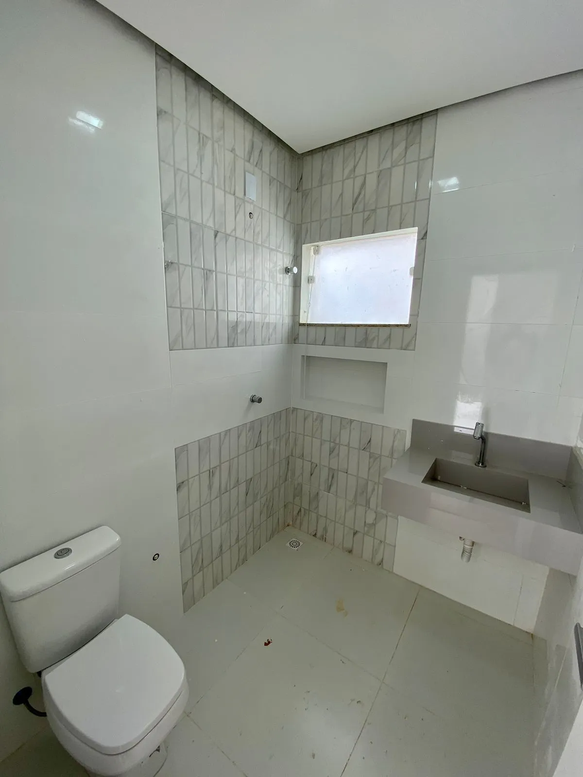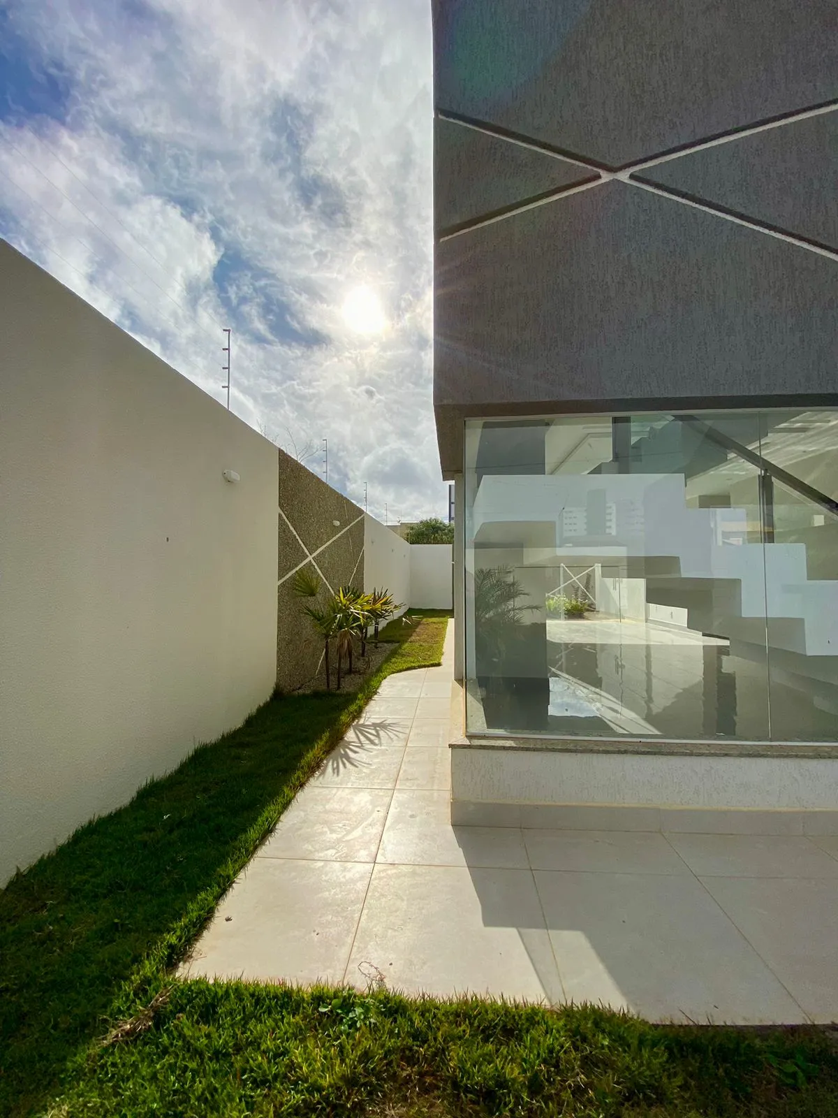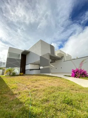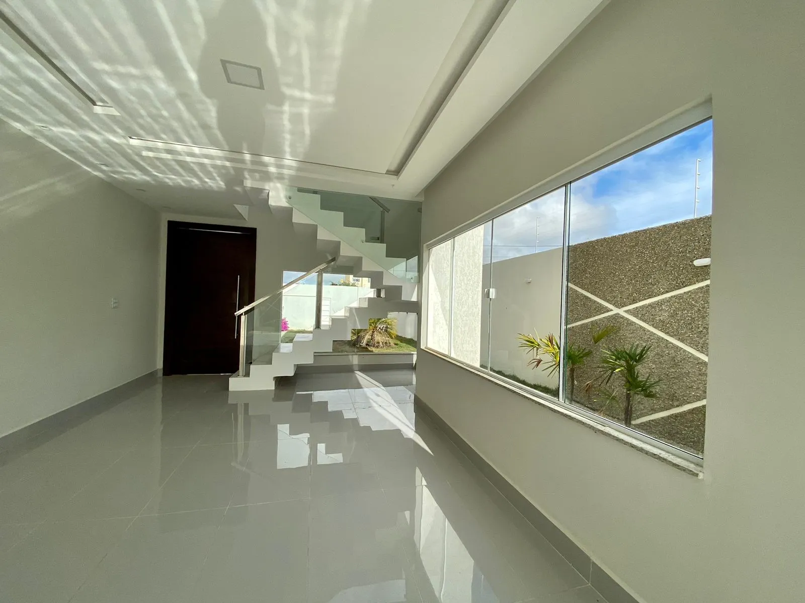 Casa com 03 suítes sendo uma suíte máster com banheira, sala, cozinha, banheiro social, quintal, área gourmet e garagem para 04 carros.