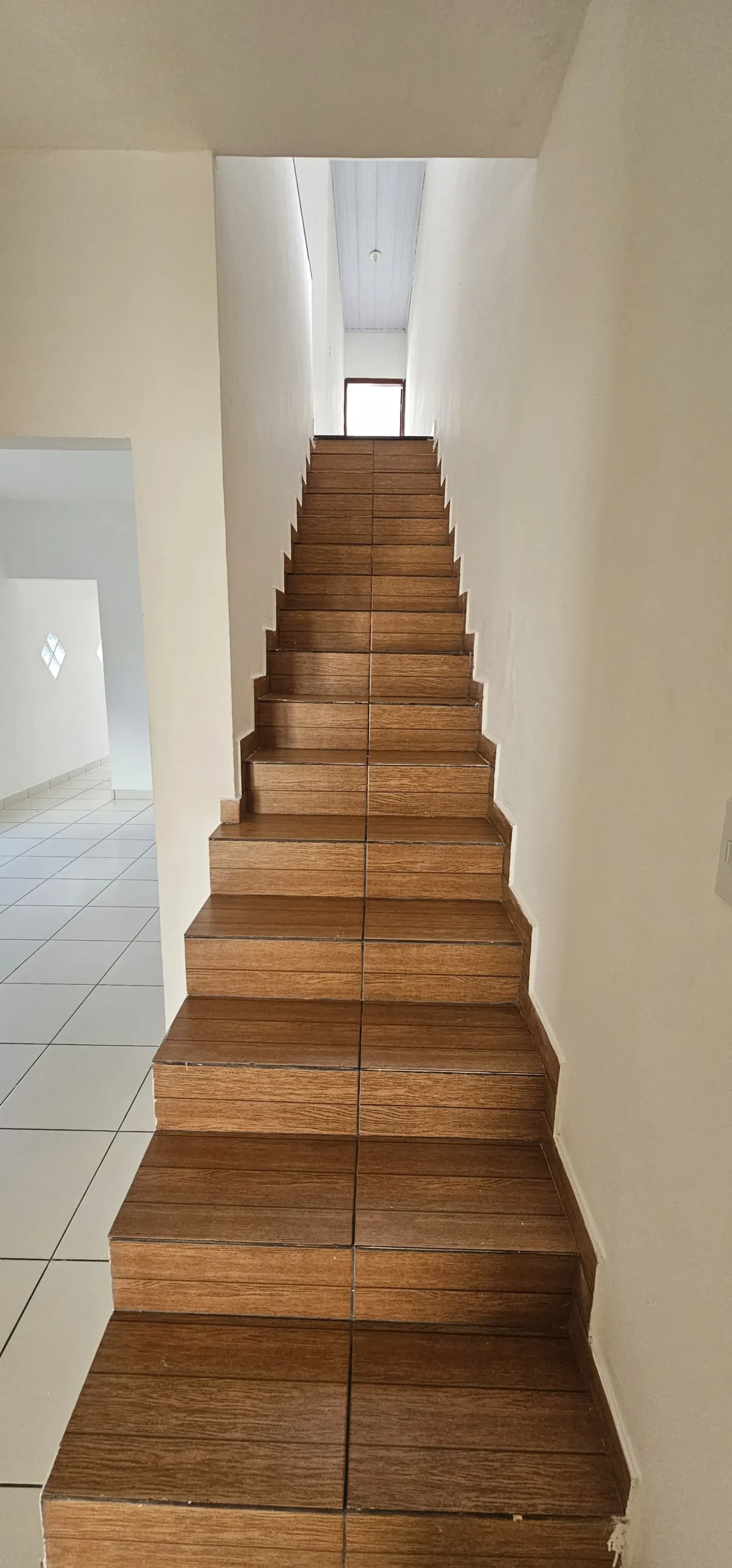 Casa Pavimento Térreo, ante sala, 01 sala, banheiro social, cozinha, área de serviço, pequeno quintal, 01 suíte no fundo e garagem. Pavimento superior, 03 quartos sendo uma suíte, sala, banheiro social e varanda.