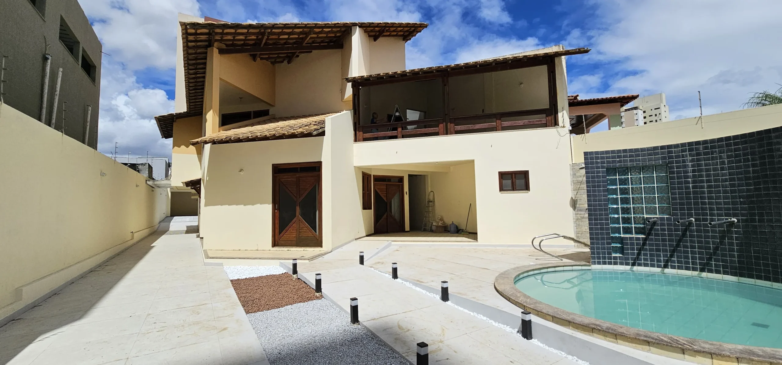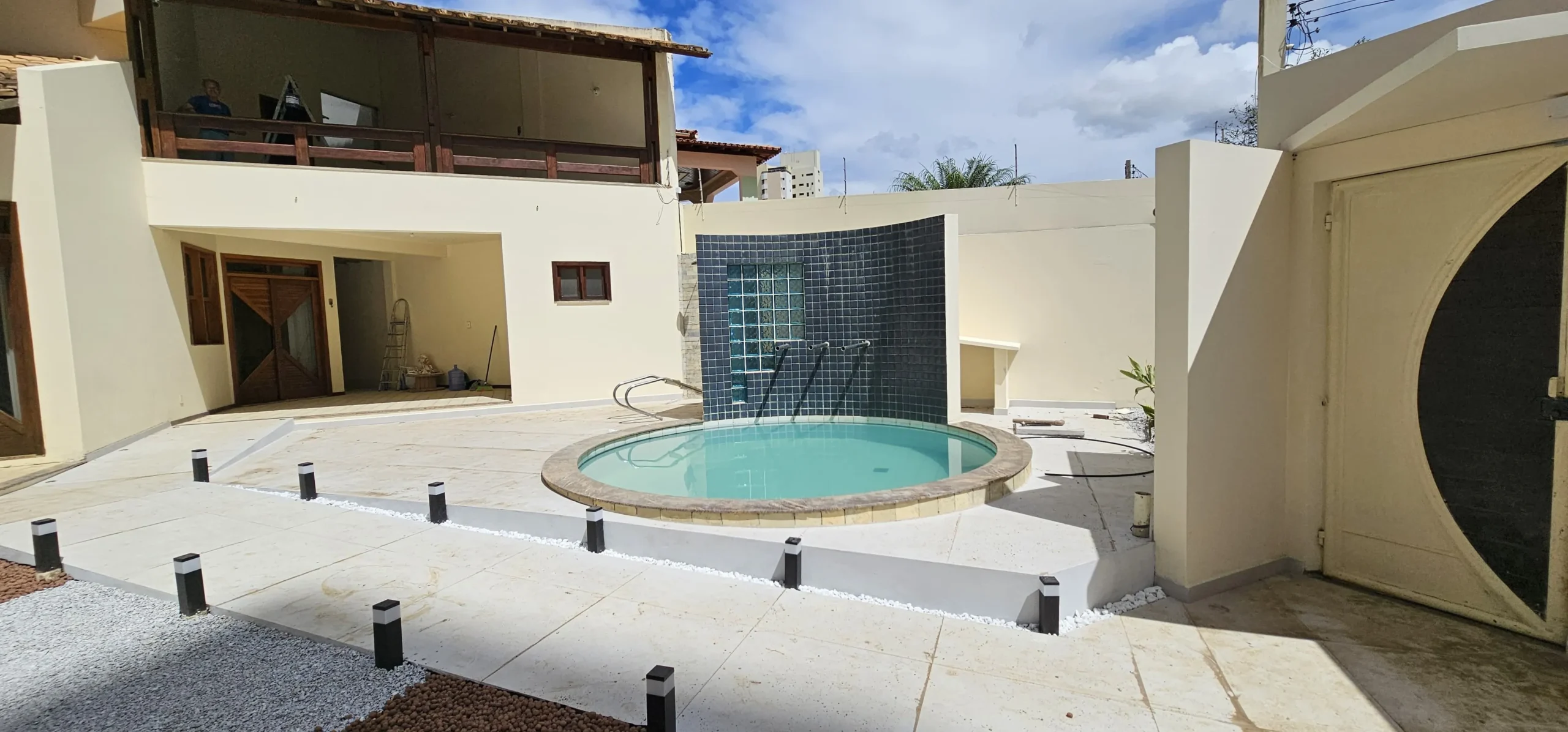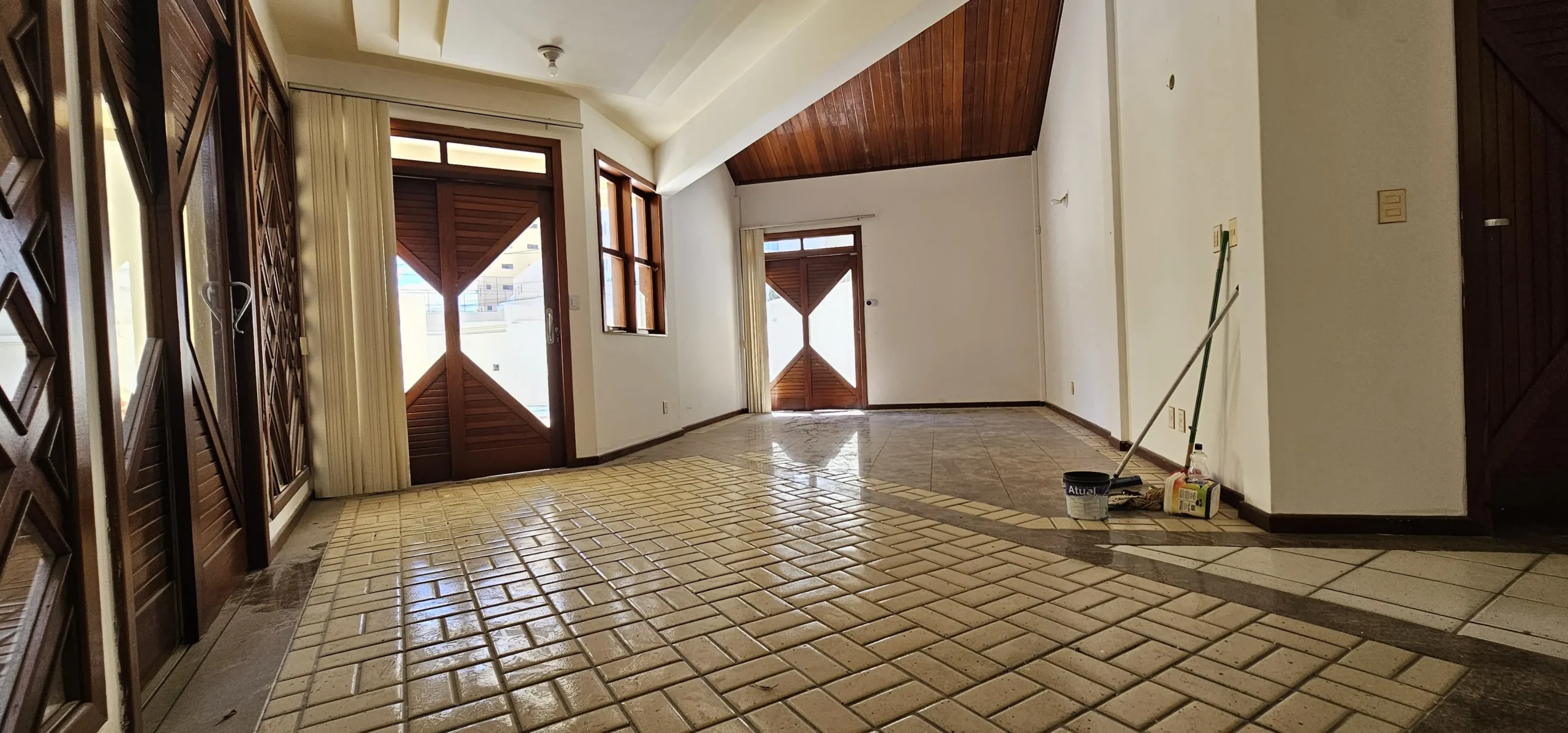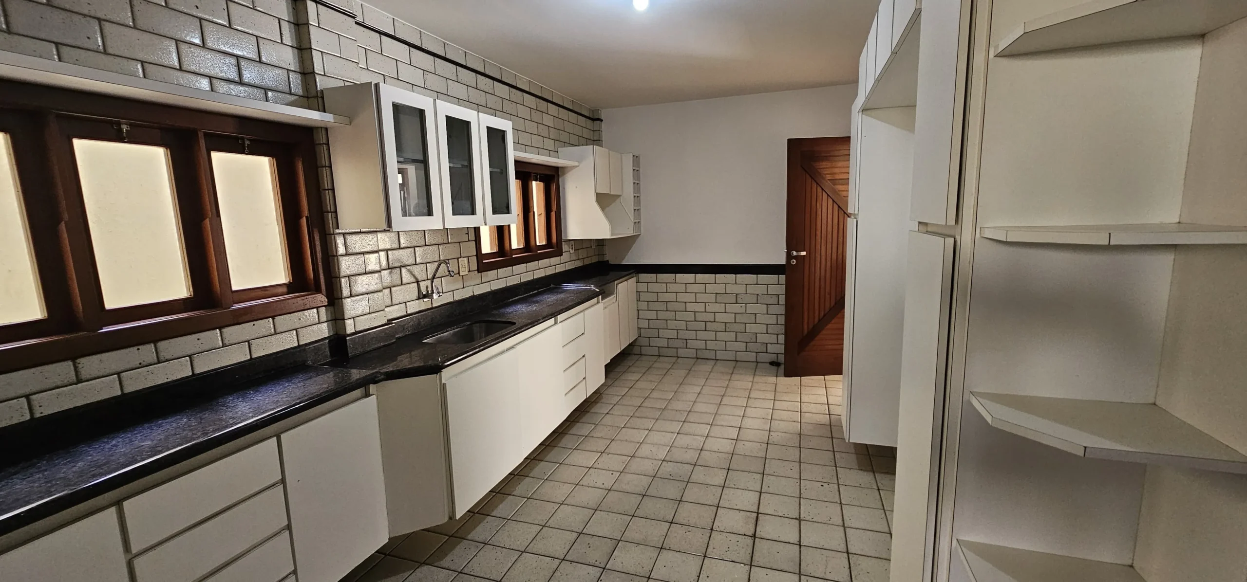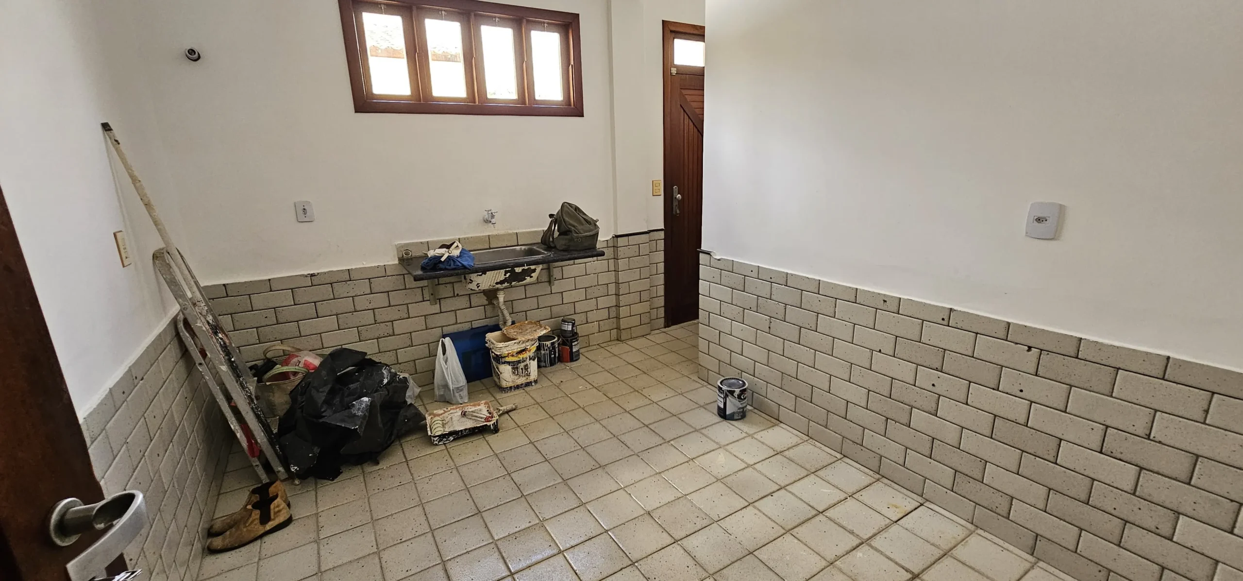 02 salas amplas, 01 suíte, sanitário social, cozinha com armários, dependência de empregada completa, área de serviço coberta, canil, piscina, sauna, varandas, garagens para 10 carros sendo que dar para colocar 03 na lateral.