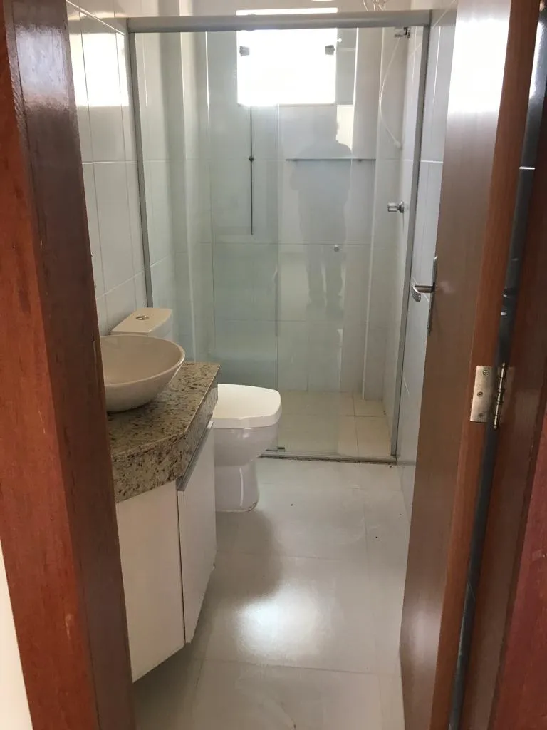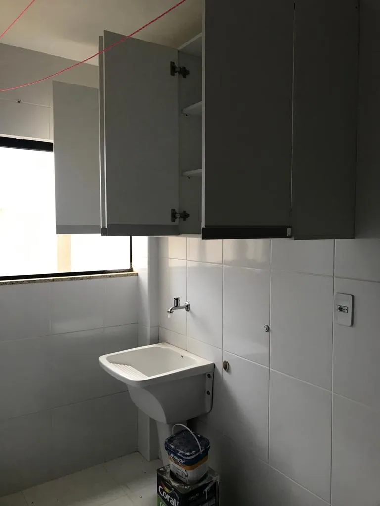 Apartamento com 03 quartos, sendo 01 suíte, sala, cozinha com armários, 01 sanitário social, área de serviço, 01 WC para empregada, 02 garagem, salão de festas.
